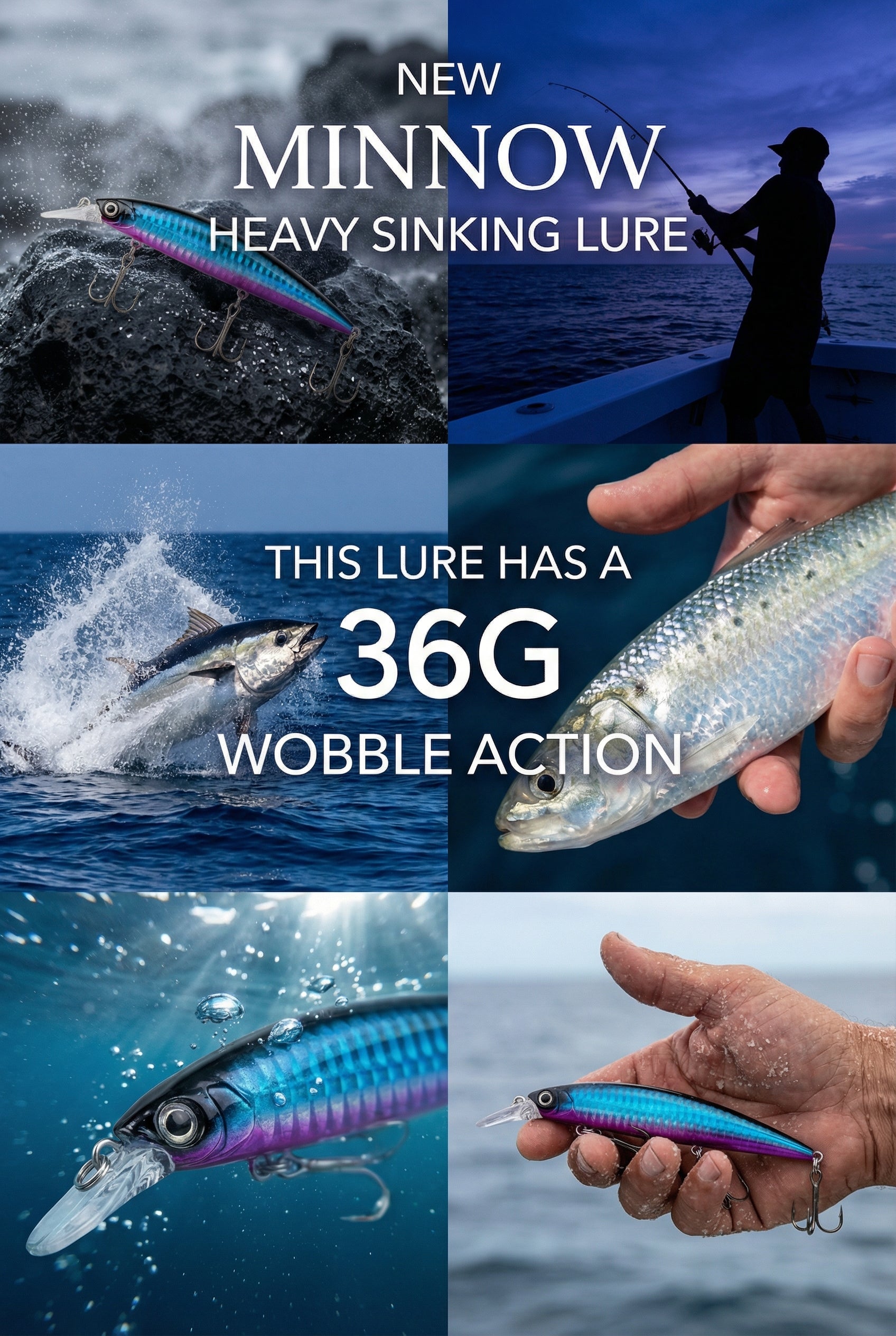 This heavy sinking minnow lure excels in saltwater environments where depth control and baitfish mimicry matter most. Weighing 36g (1.27oz), it cuts through offshore currents and reaches productive zones quickly, making it a top choice for targeting tuna, striped bass, and mahi mahi. The wobbling action creates natural swimming patterns that appeal to predatory instincts, while the blue coloration matches common forage species. Engineered for durability in harsh saltwater conditions, this lure maintains consistent performance cast after cast, delivering the reliability experienced anglers demand.